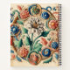 Le produit représente un design floral magnifiquement complexe et décoratif qui combine des éléments d'illustrations botaniques de style médiéval et Renaissance. La composition est composée d'un ensemble de fleurs colorées, dont une fleur blanche centrale avec des pétales détaillés, entourée de motifs circulaires contenant des fleurs bleues, rouges et roses. Ces fleurs sont entrelacées de vignes tourbillonnantes et de feuilles dans des tons verts, bleus et terreux vibrants, donnant à la conception une apparence dynamique et harmonieuse. Le design présente un style artistique qui rappelle des manuscrits illuminés ou des filiges ornées, avec une élégante esthétique vintage. L'arrière - plan est texturé doucement, ce qui renforce l'aspect traditionnel de l'oeuvre. Les détails, comme les petits papillons et les boucles délicates, ajoutent à la qualité fantaisiste et enchanteresse de la pièce.