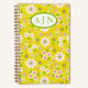 Carnet Fleurs Mood rétro Monogramme jaune et blanc
