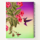 Un colibri glisse du nectar des fleurs rouge vif, contre un arrière - plan de dégradé violet à vert, sur ce carnet en spirale. Parfait pour la maison, le bureau ou l'école.