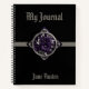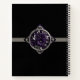 De belles fleurs violettes dans un cadre gothique gris sont placées sur une bande grise contre un arrière - plan noir sur cette belle couverture de carnet. Facilement personnalisé avec un nouveau titre et votre nom. Très belle et élégante.