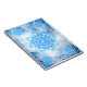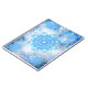 Un design bleu dentelle qui rappelle les flocons de neige dans une fenêtre gelée.