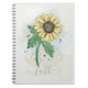 Carnet avec tournesol jaune aquarelle dans un style de doodle esquissé à l'avant, avec "foi" écrit ci-dessous dans une police tourbillonnant (peut être changé en mot ou nom de votre choix).