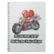A fun and vibrant cartoon illustration featuring a red heart character driving a motorcycle with a cool brain character as a passenger. This design perfectly balances emotion and logic with the humorous quote: 'Follow your heart, but take your brain with you.' Ideal for fans of clever puns and motivational art."