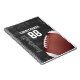 Un design moderne en métal en grille de football américain avec un football sur un arrière - plan de typographie de tableau noir avec terminologie de football en arrière - plan. Le design comprend du texte personnalisable pour le nom et le numéro du joueur de football ou du ventilateur en grille. Ce design a été réalisé en partie avec des graphismes sous licence Graphics Factory.