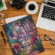 Un carnet/journal entièrement personnalisable affichant une aquarelle numérique d'une forêt colorée et capricieuse.
