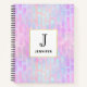 Carnet Spiral avec un motif arrière - plan abstrait. Les aquarelles rose violet et bleu composent ce design artistique qui présente des formes verticales rectangle sur un arrière - plan doux et marbré. Un carré superposé avec une fausse bordure en feuille d'or, votre texte personnalisé à l'intérieur.