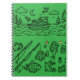 A playful black-and-white doodle featuring fishing gear, cheerful fish, beer bottles, and a lakeside boat scene—perfect for coloring and creative projects.