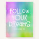 Un design motivationnel moderne et amusant avec le texte "Suivez vos rêves" en lettrage décalé sur un arrière - plan coloré de dégradé arc-en-ciel. Ajoutez votre nom dans les lettres correspondantes.