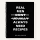 A bold and hilarious take on kitchen confidence, this notebook makes the perfect gift for any man who proudly cooks with instructions. The playful text features strike-through edits that land on the ultimate truth: “Real men always need recipes.” Personalize the bottom with a name to create a one-of-a-kind journal for meal planning, grocery lists, or family recipes. A fun and functional gift for husbands, dads, or foodie friends.