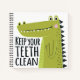 Cette conception dessinée à la main présente un crocodile souriant avec une phrase qui promeut la santé.