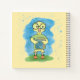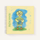 A cute yellow , blue and green spiral notebook for kids with a geeky duckling wearing big round eyeglasses and holding a book . Choose the type of paper you want inside ( ruled , handwriting practice , grid , or sketch ) . You can also choose between a soft or hardcover (for more durable life) . Personalize it with the name of the child .