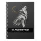 Un cuaderno elegante con diseño de lobo geométrico aullando a la luna en estilo black & gold. Representa fuerza, libertad y misterio en una estética minimalista y moderna.