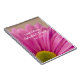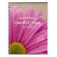 Customisez la jolie marguerite rose sur le Carnet tourbillon Mariage Tan avec les noms personnels de la mariée et du marié et datez pour créer un livre de conseils unique pour les jeunes mariés ou livre d'invités pour leur cérémonie de mariage. Cet élégant livre de notes nuptiales à fleurs customisées présente une photographie florale numériquement peinte d'une fleur de marguerite rose gerbée avec un centre jaune et un arrière - plan bronzé.