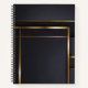 This refined notebook features a striking geometric composition of deep matte black panels intersected by clean metallic gold lines. The design balances modern minimalism with understated luxury, creating a sophisticated surface that feels architectural and intentional. Ideal for journaling, planning, or creative work, it brings a sense of focus and elegance to everyday writing—equally suited for professional desks, personal reflection, or thoughtful gifting.
