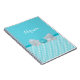 Ajoutez une touche de charme champêtre à votre style personnel avec cette aqua girly et biais blanc en vichy carnet motif avec un joli arc blanc transparent décoré de jolies perles et un ruban de rosette bleu clair. Ce design bleu clair féminin peut être personnalisé en ajoutant votre nom. Image imprimée plate, pas le ruban réel.