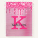 Ce design de poutres glam tendance et unique présente des gouttes de parties scintillant rose bonbon en haut et un grand monogramme personnalisable en fuchsia magenta rose chaud au centre dans la typographie serif populaire ainsi qu'un nom personnalisable en gris dans le script populaire avec un look lettré à la main. L'arrière - plan comprend du métal rose bonbon brossé pour ajouter du brillant. Vous pouvez personnaliser cet article en modifiant le monogramme et le nom dans le modèle de produit.