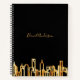 Un arrière - plan noir, avec un skyline de ville en faux or comme décor. Modèle pour ton nom, lettres d'or. Le nom est écrit avec une écriture manuscrite moderne et tendance. Parfait pour les agents immobiliers ! Ce carnet est également disponible dans notre magasin avec votre propre entreprise, logo de l'entreprise.