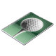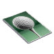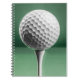 Carnet spiral avec une image de haute qualité d'une balle de golf blanche sur un tee blanc devant un arrière - plan vert.