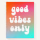 Un design de typographie rétro super "bonnes vibes seulement" sur un dégradé orange vif, rose chaud et bleu aqua. Vous pouvez supprimer le dégradé et utiliser un arrière - plan dans le système. Par exemple, un arrière - plan de couleur solide. Ajoutez votre propre texte ou photo personnalisé pour créer votre propre carnet vierge.