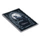 Set the tone for a mysterious dark academia aesthetic with this personalized spiral notebook. The design features a detailed black crow illustration perched within a gothic archway, rendered in a striking monochrome charcoal and moonlight palette. It is the perfect way to capture daily thoughts or a thoughtful gift for the writer and dreamer in your life.