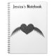 Ce magnifique carnet personnalisable présente un joli coeur noir gothique avec l'apparence de dentelle fine. Le coeur est flanqué sur les deux côtés avec des ailes argentées métalliques brillantes. Il y a du texte personnalisable en haut du carnet qui vous permet de le personnaliser pour vous-même ou de le donner en cadeau.