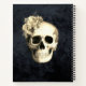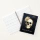 Carnet personnalisé élégant et chic gothique du crâne floral. Le design présente un crâne blanc accentué d'une belle rose blanche sur un arrière - plan de texture noire. Personnalisez avec votre nom et votre année