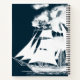 Grand navire naviguant en douceur et un nuage flottant fluffy comme compagnie...jour parfait. Tout une silhouette blanche sur un élégant arrière - plan bleu foncé, Customisez à votre goût.