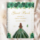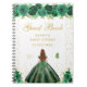Cet élégant et glamour livre d'hôtes en sweet sixteen présente une belle princesse aux cheveux roux bruns et à la peau claire dans une robe de boule verte. Le texte combine écriture manuscrite et polices sans serif modernes pour un look élégant et sophistiqué. Les compositions florales, les papillons et les confettis d'or créent un mélange parfait de rustique et de chic. Graphiques par www.etsy.com/uk/shop/SunflowerDayLove