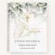 Cette conception présente une illustration du feuillage vert et or en aquarelle. Au-dessus des feuilles - des confettis ornent le dessus de la carte. Sur le feuillage vert il y a une image d'une Croix