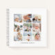 Customisez ce carnet en spirale avec neuf photos de carré disposées dans un plan de montage en grille, avec votre nom de famille, nom d'entreprise ou choix de personnalisation en dessous de lettres modernes. La couverture arrière a le ton sur les rayures gris pastel. Idéal pour afficher des photos de famille ou votre portfolio photographique.