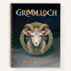 Capture your thoughts in style with this Grimmloch spiral notebook, featuring the official emblem of the narrative-based RPG by Opulent Code LLC. The detailed horned goat crest, paired with rich teal and gold tones and full Grimmloch branding, creates a bold and immersive cover design.