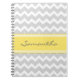 Un beau journal en spirale avec rétros les chevrons jaune citron, gris et blancs lumineux élégants et modernes zigzague motif de rayures. Customisez ce carnet avec votre texte nommé ou fait sur commande.