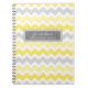 Le carnet en spirale de livre d'invité de mariage dans les chevrons jaune citron, de charbon de bois de gris et blancs lumineux élégants rétros et décontractés zigzague motif de rayures. Personnalisable avec vos noms et date de mariage.