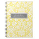 Carnet en spirale de livre d'invité de mariage dans le motif vintage jaune canari lumineux élégant de damassé florale classique de jaune, grise et blanche. Personnalisable avec vos noms et date de mariage.