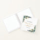 A white background color. Decorated with eucalyptus greenery and golden foliage. Add a name and a date.
