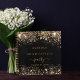 Un arrière - plan noir élégant avec de la poussière de parties scintillant en faux or foncé. Personnalisez et ajoutez un nom et la date. Peut être utilisé comme livre d'or ou la planification de la fête.