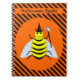 Ce magnifique carnet est doté d'une jolie petite sorcière d'abeille jaune avec des rayures noires. L'abeille a de grandes rayures noires brillantes et de petites antennes noires mignonnes. Les ailes de l'abeille sont repliées pour ressembler à une cape. L'abeille porte un grand casquette de sorcières noires avec des étoiles orange et violette. Il tient également une baguette magique en forme d'étoile et brille de mille couleurs. L'arrière - plan est un motif à rayures orange et noire.