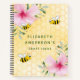 Jaune, arrière - plan blanc avec un motif de nid d'abeille. Décoré de fleurs de fleurs tropicales roses, d'hibiscus et de jolies bourdons. Modèles pour votre nom et un titre de livre. Parfait pour gribouiller, esquisser et écrire vos idées d'artisanat.