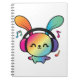 Carnet Happy Bunny avec écouteurs écoutant de la musique.