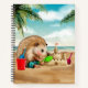 Un Adorable Petit Hérisson Bâtissant Des Châteaux De Sable Dans Le Sable À La Plage, Peut Être Un Croquis Ou Un Carnet D'Écriture Pour La Maison Ou L'École.