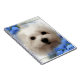 Caractéristiques du produit ce Hermes, un petit chien maltais doux. Son portrait est contenu dans un cadre reflété entouré par de jolies jacinthes des bois.