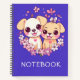 Deux mignons chiots entourés de coeurs et de fleurs avec personnaliser/personnalisation texte