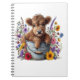 Carnet Highland Cow in Flower Bucket Png, Cute
