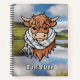 Caricature de vache de Highland portant le foulard de tartan noir et blanc de MacFarlane. Paysage arrière - plan personnalisé sur les deux couvertures. Texte personnalisé.