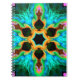 Prenez l'un de ces carnets vibrants avec un design kaléidoscope psychédélique turquoise, orange et noir.