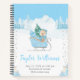 Ce carnet mignon et amusant présente un adorable ours dans un traîneau bleu entouré de neige, de montagnes et de pins. De belles compositions de fleur en faux parties scintillant et des confettis argentés apportent une touche festive. Le texte combine écriture manuscrite et polices sans serif pour un look élégant et moderne. Il peut être personnalisé avec les statistiques de naissance de votre bébé, comme le nom, la taille, la date et l'heure de naissance, ou si vous souhaitez le donner comme cadeau de douche vous pouvez modifier et supprimer du texte.