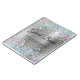 Girly faux sparkly, pastel holographic colored glitter on the top and bottom edge, over a faux silver grey ombre foil.