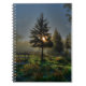 Un soleil lève la lumière au-dessus de la ligne d'arbres pour inonder le ranch de sa lueur de jour.