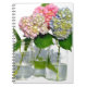 Hydrangées classiques roses, bleues et vertes dans les jarres de Mason