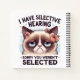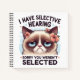 A playful and sarcastic design featuring a Himalayan cat with stunning blue eyes, brown and tan fur, and flowers adorning her ears. With a frown on her face, the cat is paired with bold black text that reads, "I have selective hearing. Sorry you weren't selected." This lively design is available on a range of products, making ideal gifts for cat lovers.